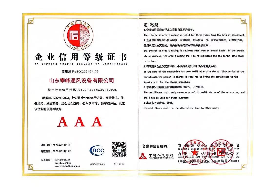 • 企業(yè)信用等級(jí)證書